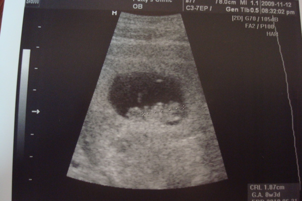 這是胎兒八周大的照片,距離第一次產檢約兩週的時間,